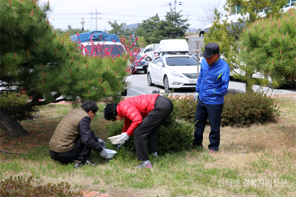 40¿©¸íÀÇ È¸¿øµéÀº º¹Áö°ü ±¸³» ½É¾îÁø Àå¹Ì 50¿© ±×·ç¸¦ ºñ·ÔÇÑ Áø´Þ·¡, ¸ÅÈ µî ÈÃÊ¿¡ ºñ·á¸¦ ÁÖ¾ú´Ù. ¶ÇÇÑ ¹æÃµ±æ¿¡ ÀÖ´Â ¾²·¹±â¸¦ Ä¡¿ì°í ÀâÃʸ¦ Á¦°ÅÇÑ ÈÄ ÄÚ½º¸ð½º ¾¾¾ÑÀ» »Ñ¸®´Â µî º¹Áö°ü ³»¡¤¿Ü¸¦ Á¤¼ºµé¿© °¡²å´Ù.