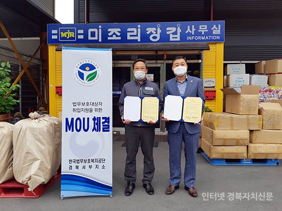 ❑ Çѱ¹¹ý¹«º¸È£º¹Áö°ø´Ü °æºÏ¼ºÎÁö¼Ò(Áö¼ÒÀå ¹Ú±¤Èì)´Â 2021³â 6¿ù 10ÀÏ ¹ÌÁ¶¸®Àå°©(ÁÖ)(´ëÇ¥ ¹é¾ïÇö)¿¡¼ Ãâ¼ÒÀÚµéÀÇ ÀÏÀÚ¸® âÃâÀ» À§ÇÑ ¾÷¹«Çù¾àÀ» ü°áÇÏ¿´´Ù.