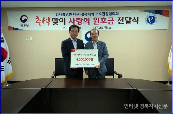 ´ë±¸ÁعýÁö¿ø¼¾ÅÍ(´ë±¸º¸È£°üÂû¼Ò)´Â ¹ÎÁ· ÃÖ´ë ¸íÀýÀÎ Ãß¼®À» ¸Â¾Æ ¾î·Á¿î ¿©°Ç¿¡¼µµ °ÇÀüÇÏ°Ô »ì¾Æ°¡°íÀÚ ³ë·ÂÇÏ´Â º¸È£°üÂû´ë»óÀÚ µé¿¡°Ô 400¸¸ ¿øÀÇ ¿øÈ£±ÝÀ» Àü´Þ, Áö¿ª»çȸÀÇ µû¶æÇÑ »ç¶ûÀÇ ¿Â±â¸¦ ÀüÇÏ°í °ÇÀüÇÑ ÀÚȰ ÀÇÁö¸¦ ºÏµ¸¿ì¾ú´Ù.