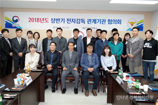 ¹ý¹«ºÎ ´ë±¸º¸È£°üÂû¼Ò(¼ÒÀå ÀÌ¿ì±Ç)´Â 2018³â 4¿ù 25ÀÏ °ü³» °æÂû¼(´ë±¸ µ¿ºÎ, ¼ö¼º, ÁߺÎ, ³²ºÎ, ºÏºÎ, °ºÏ, °æ»ê, ûµµ, ¿µÃµ, Ä¥°î, ±ºÀ§°æÂû¼)°¡ Âü¿©ÇÏ´Â ¡®ÀüÀÚ°¨µ¶ °ü°è±â°ü ÇùÀÇȸ¡¯¸¦ °³ÃÖÇÏ¿´´Ù.