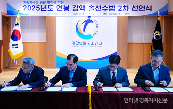 [¼³¸í¡³´ëÇѹý·ü±¸Á¶°ø´Ü ÀϹÝÁ÷ °ü¸®ÀÚµéÀÌ ¿¬ºÀ°¨¾× µ¿ÀǼ¿¡ ¼¸íÀ» Çϰí ÀÖ´Ù. °ø´ÜÀº Áö³ 7ÀÏ ÀÓ¿ø ¹× °íÀ§°ü¸®ÀÚµéÀÇ ¿¬ºÀ °¨¾× ¼Ö¼±¼ö¹ü 1Â÷ ¼±¾ð½ÄÀ» ÁøÇàÇß°í ÀϹÝÁ÷ °ü¸®ÀÚµµ ÀÌ¿¡ µ¿ÂüÇÏ¿© 2024³â¿¡ À̾î 2025³â¿¡µµ ó¿ì°³¼±ºñ¸¦ µ¿°áÇϱâ·Î Çß´Ù.