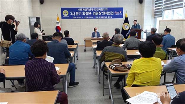 À̾î À§¿øÀå ȸÀǸ¦ ¿¾î ¹Ù¸£°Ô»ì±â¿Í À̳äÀÌ °°Àº ±èõ½ÃÀÇ ÇØÇÇÅõ°Ô´õ ±èõ ¿îµ¿¿¡ ¼±µÎÀû ¿ªÇÒÀ» ÇÏÀÚ´Â ´ÙÁüÀ¸·Î ½ÃÀÛµÆÀ¸¸ç 2020³âµµ Áß¿ä»ç¾÷ Ȱ¼ºÈ ¹æ¾È°ú ³íÀǸ¦ °¡Á³´Ù.