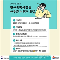 Àå¾ÖÀÎÆò»ý±³À°-Æò»ý±³À°¿ø(»çÁø1)±èõ½Ã, Àå¾ÖÀÎ Æò»ý±³À°ÀÌ¿ë±Ç Áö¿ø±èõ½Ã¹ÎÀ¸·Î 19¼¼ ÀÌ»ó µî·ÏÀå¾ÖÀÎ ´©±¸³ª ½Åû °¡´É, 30¸í ¸ðÁý ±èõ½Ã´Â ¿À´Â 8¿ù 1...