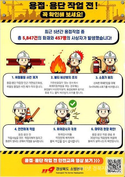 ±èõ¼Ò¹æ¼­(¼­Àå ¾È¿µÈ£)´Â °ø»çÇöÀå¿¡¼­ ¿ëÁ¢ÀÛ¾÷½Ã ¹ß»ýÇÑ ºÒƼ·Î ÀÎÇÑ È­Àç ÇÇÇØ°¡ °è¼Ó ¹ß»ýÇϰí ÀÖ¾î È­Àç ¿¹¹æ¿¡ ÁÖÀÇÇØ ´Þ¶ó°í ¸»Çß´Ù.