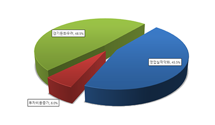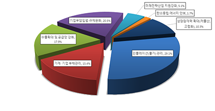Çѱ¹ °æÁ¦ ȸº¹À» À§ÇØ Á¤Ã¥´ç±¹ÀÌ ÁßÁ¡À» µÖ¾ß ÇÒ °æÁ¦Á¤Ã¥ ºÐ¾ß·Î´Â ¡®ÀÎÇ÷¹À̼Ç(¹°°¡)°ü¸®¡¯(29.1%), ¡®±â¾÷ºÎ´ãÀÔ¹ý¡¤±ÔÁ¦¿ÏÈ¡¯(20.5%), ¡®¼öÃâÈ®´ë ¹× °ø±Þ¸Á°È¡¯(17.9%), ¡®°¡°è¡¤±â¾÷ ºÎä°ü¸®¡¯(15.4%), ¡®¼ºÀåÀáÀç·Â È®´ë(ÀúÃâ»ê¡¤°í·ÉÈ)¡¯(10.3%), ¡®¹Ì·¡Àü·«»ê¾÷ Áö¿ø°È¡¯(5.1%), ¡®Åº¼ÒÁ߸³¡¤¿¡³ÊÁö ¾Èº¸¡¯(1.7%) µîÀ¸·Î Á¶»çµÆ´Ù.