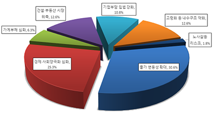 2025³âµµ ¿ì¸® °æÁ¦¸¦ À§ÇùÇÏ´Â ´ë³» ¸®½ºÅ© ¿äÀÎÀ» ¹¯´Â Áú¹®¿¡´Â ¡®¹°°¡ º¯µ¿¼º È®´ë¡¯(30.6%), ¡®°æÁ¦¡¤»çȸ ¾ç±ØÈ ½ÉÈ¡¯(25.3%), ¡®°í·ÉÈ µî ³»¼ö±¸Á¶ ¾àÈ¡¯(12.6%), ¡®°Ç¼³¡¤ºÎµ¿»ê ½ÃÀå À§Ã࡯(12.6%), ¡®±â¾÷ºÎ´ã ÀÔ¹ý °È¡¯(10.8%), ¡®°¡°èºÎä ½ÉÈ¡¯(6.3%), ¡®³ë»ç°¥µî ¸®½ºÅ©¡¯(1.8%) ¼øÀ¸·Î ´äÇß´Ù.