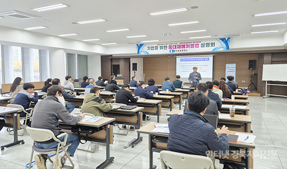 À̹ø ¼³¸íȸ´Â Áö³ 1¿ù 27ÀϺÎÅÍ 5ÀÎ ÀÌ»ó 50ÀÎ ¹Ì¸¸ »ç¾÷Àå¿¡ Àû¿ëµÈ Áß´ëÀçÇØÃ³¹ú¹ýÀ¸·Î ÀÎÇØ °æ¿µ¿¡ ¾î·Á¿òÀ» °Þ°í Àִ ȸ¿ø»ç¿¡ µµ¿òÀ» ÁÖ±â À§ÇØ »ê¾÷¾ÈÀüº¸°Ç°ø´Ü°ú °øµ¿À¸·Î Áß´ëÀçÇØÃ³¹ú¹ý¿¡ µû¸¥ ±â¾÷ÀÇ ´ëÀÀ¹æ¾ÈÀ» Á¦½ÃÇÏ¿´´Ù.