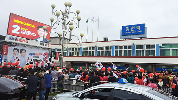 À̳¯ ±èõ¿ª¿¡¼´Â ±èõ½Ã¹Î 3,500¿© ¸íÀÌ ¿îÁýÇÏ¿© ±è¹®¼ö Èĺ¸¿¡ ´ëÇÑ ¿¶í ÁöÁö¿Í ȯȣ¸¦ º¸³Â´Ù. ±è¹®¼ö È帴 °¨»çÀÇ Àǹ̷ΠūÀýÀ» ¿Ã¸®¸ç È´äÇß´Ù.