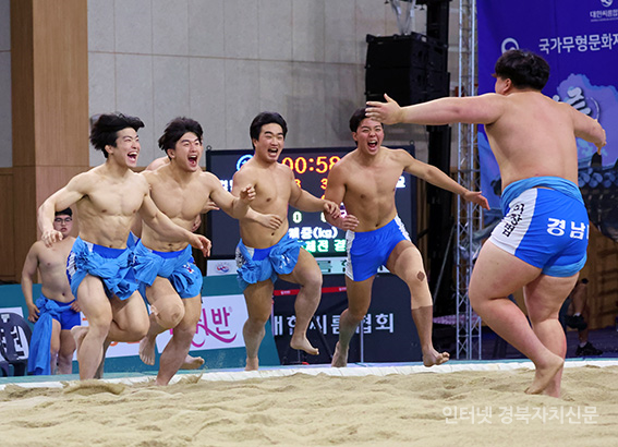 ÆÀÀÇ ¿ì½ÂÀ» È®Á¤ÁöÀ» ¸¶Áö¸· Àå»ç±Þ(140kg ÀÌÇÏ)°æ±â °æ³²´ëÇб³ ÀÌâ¹üÀº ¹Ð¾îÄ¡±â¿Í µé¹èÁö±â·Î Á¦¾ÐÇϸç ÃÖÁ¾½ºÄÚ¾î 4-3À¸·Î °æ³²´ëÇб³´Â ¿ì½ÂÀ» È®Á¤Áö¾ú´Ù.
