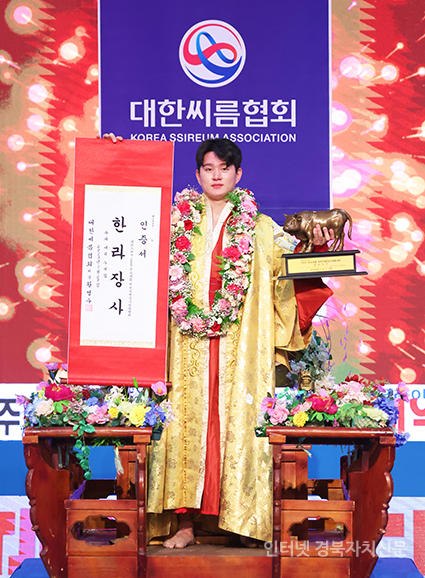 1ÃæÃ»ºÏµµ Á¦Ãµ½Ã Á¦ÃµÃ¼À°°ü¿¡¼ ¿¸° ¡®À§´õ½ºÁ¦¾à 2023 ¹Î¼Ó¾¾¸§ Á¦ÃµÀǺ´Àå»ç¾¾¸§´ëȸ¡¯ ÇѶóÀå»ç(105kgÀÌÇÏ)¿¡ µî±ØÇÑ Â÷¹Î¼ö(¿µ¾Ï±º¹Î¼Ó¾¾¸§´Ü)°¡ ²É°¡¸¶¿¡ ¿Ã¶ó Àå»çÀÎÁõ¼¿Í Ȳ¼ÒÆ®·ÎÇǸ¦ µé°í ±â³ä»çÁøÀ» Âï°í ÀÖ´Ù.