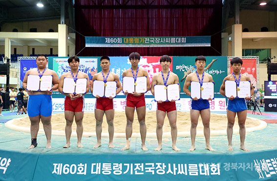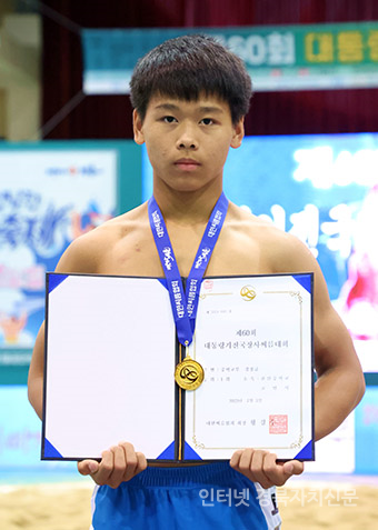 ´ëÅë·É±âÀü±¹Àå»ç¾¾¸§´ëȸ' ÁßÇб³ºÎ °³ÀÎÀü °æÀå±Þ(60kg ÀÌÇÏ)¿¡¼ ¿ì½ÂÇÑ °í¹Î½Ä(°ü»êÁßÇб³)ÀÌ ±â³ä ÃÔ¿µÀ» Çϰí ÀÖ´Ù.