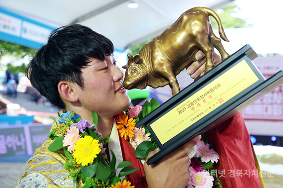 °¸ª´Ü¿ÀÀå»ç¾¾¸§´ëȸ¡¯ ÇѶóÀå»ç(105kgÀÌÇÏ)¿¡ µî±ØÇÑ ¿Àâ·Ï(MG»õ¸¶À»±Ý°í¾¾¸§´Ü)ÀÌ È²¼ÒÆ®·ÎÇǸ¦ µé°í ±â³ä»çÁøÀ» Âï°í ÀÖ´Ù.