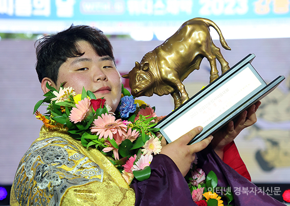 1°¸ª´Ü¿ÀÀå»ç¾¾¸§´ëȸ¡¯ ¹éµÎÀå»ç(140kgÀÌÇÏ)¿¡ µî±ØÇÑ ±è¹ÎÀç(¿µ¾Ï±º¹Î¼Ó¾¾¸§´Ü)°¡ Àå»çÀÎÁõ¼¿Í Ȳ¼ÒÆ®·ÎÇǸ¦ µé°í ±â³ä»çÁøÀ» Âï°í ÀÖ´Ù.