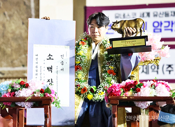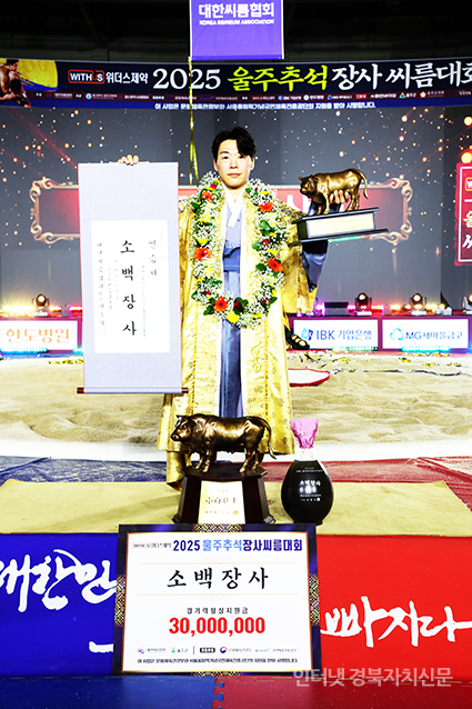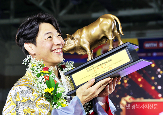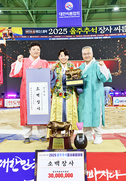 ¿ïÁÖ±º ¿ïÁÖÁ¾ÇÕüÀ°¼¾ÅÍ¿¡¼ ¿¸° ¡®À§´õ½ºÁ¦¾à 2025 ¿ïÁÖÃß¼®Àå»ç¾¾¸§´ëȸ¡¯ ¼Ò¹éÀå»ç(72kgÀÌÇÏ)¿¡ µî±ØÇÑ À̿ϼö(ÁõÆò±ºÃ»)°¡ Àå»çÀÎÁõ¼¿Í Ȳ¼ÒÆ®·ÎÇǸ¦ µé°í ±â³ä»çÁøÀ» Âï°í ÀÖ´Ù.