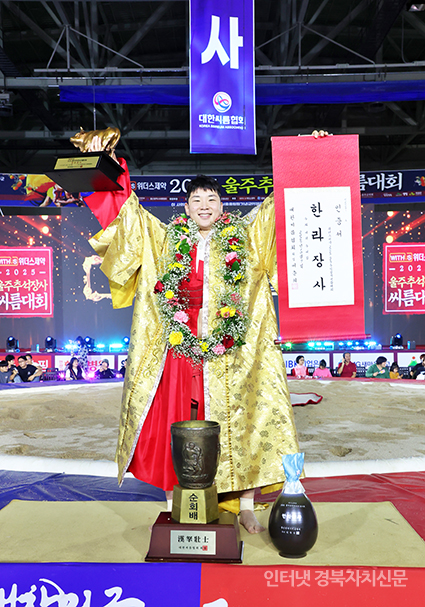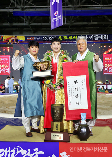 4 2025 ¿ïÁÖÃß¼®Àå»ç¾¾¸§´ëȸ¡¯ ÇѶóÀå»ç(105kgÀÌÇÏ)¿¡ µî±ØÇÑ ±è¹«È£(¿ïÁÖ±ºÃ»)°¡ ¿ì½Â ÈÄ ±â»ÝÀ» Ç¥Çϰí ÀÖ´Ù.