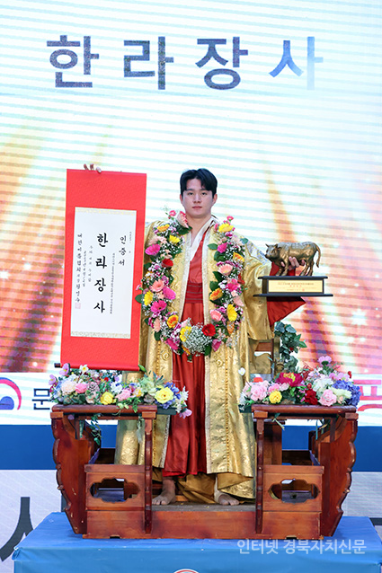 1Æòⱺ ÁøºÎ»ýȰüÀ°°ü¿¡¼ ¿¸° ¡®À§´õ½ºÁ¦¾à 2023 ¹Î¼Ó¾¾¸§ Æòâ¿À´ë»êõÀå»ç¾¾¸§´ëȸ¡¯ ÇѶóÀå»ç(105kgÀÌÇÏ)¿¡ µî±ØÇÑ Â÷¹Î¼ö(¿µ¾Ï±º¹Î¼Ó¾¾¸§´Ü)°¡ Àå»ç²É°¡¸¶¸¦ Ÿ°í Àå»çÀÎÁõ¼¿Í Ȳ¼ÒÆ®·ÎÇǸ¦ µé°í ±â³ä»çÁøÀ» Âï°í ÀÖ´Ù.