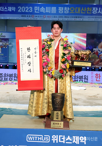 Â÷¹Î¼ö(¿µ¾Ï±º¹Î¼Ó¾¾¸§´Ü)°¡ 12ÀÏ(¼ö) °¿øµµ Æòⱺ ÁøºÎ»ýȰüÀ°°ü¿¡¼ ¿¸° ¡®À§´õ½ºÁ¦¾à 2023 ¹Î¼Ó¾¾¸§ Æòâ¿À´ë»êõÀå»ç¾¾¸§´ëȸ¡¯ ÇѶóÀå»ç(105kgÀÌÇÏ) °áÁ¤Àü(5ÆÇ3¼±½ÂÁ¦)¿¡¼ °°Àº ÆÀ µ¿·áÀÎ ÃÖ¼ºÈ¯(¿µ¾Ï±º¹Î¼Ó¾¾¸§´Ü)À» 3-2·Î ²ª°í Ȳ¼ÒÆ®·ÎÇǸ¦ µé¾î¿Ã·È´Ù.
