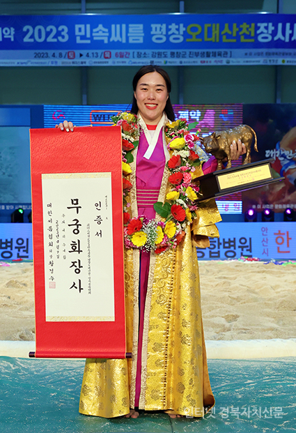4°¿øµµ Æòⱺ ÁøºÎ»ýȰüÀ°°ü¿¡¼ ¿¸°'2023 ¹Î¼Ó¾¾¸§ Æòâ¿À´ë»êõÀå»ç¾¾¸§´ëȸ' ¿©ÀںΠ°³ÀÎÀü ¹«±ÃÈÀå»ç(80kg ÀÌÇÏ)¿¡¼ ¿ì½ÂÇÑ (ÀÌ´ÙÇö)ÀÌ ±â³ä ÃÔ¿µÀ» Çϰí ÀÖ´Ù.