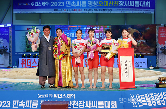 5°¿øµµ Æòⱺ ÁøºÎ»ýȰüÀ°°ü¿¡¼ ¿¸°'2023 ¹Î¼Ó¾¾¸§ Æòâ¿À´ë»êõÀå»ç¾¾¸§´ëȸ' ¿©ÀںΠ´ÜüÀü¿¡¼ ¿ì½ÂÇÑ (°ÅÁ¦½Ãû)¼±¼öµé°ú ÃÖ¼®ÀÌ °¨µ¶(¿ÞÂÊ)ÀÌ ¼±¼öµéÀÌ ±â³ä ÃÔ¿µÀ» Çϰí ÀÖ´Ù.