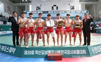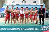 1ÁøÇع®È¼¾ÅÍüÀ°°ü¿¡¼ ¿¸° 'Á¦20ȸ Çлê±è¼º·üÀå»ç¹èÀü±¹Àå»ç¾¾¸§´ëȸ' ´ëÇб³ºÎ ´ÜüÀü¿¡¼ ¿ì½ÂÇÑ ´Ü±¹´ëÇб³(ÃæÃ»³²µµ)¼±¼öµé°ú ÁÖµÎ½Ä °¨µ¶(¿À¸¥ÂÊ)°ú ¼±¼öµé...