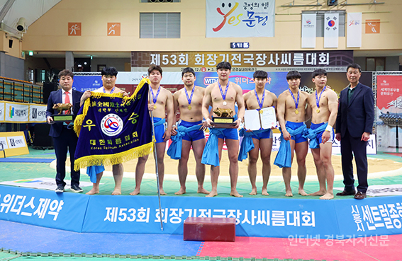 ¹®°æ½Ç³»Ã¼À°°ü¿¡¼­ ¿­¸° Á¦53ȸ ȸÀå±âÀü±¹Àå»ç¾¾¸§´ëȸ ´ëÇб³ºÎ ´ÜüÀü¿¡¼­ ¿ì½ÂÇÑ °æ±â´ëÇб³ È«¼ºÅ°¨µ¶(¿À¸¥ÂÊ)°ú ¼±¼öµé°ú ±â³ä ÃÔ¿µÀ» Çϰí ÀÖ´Ù.1