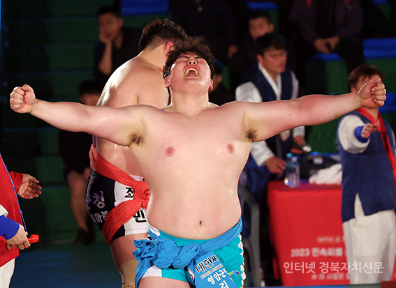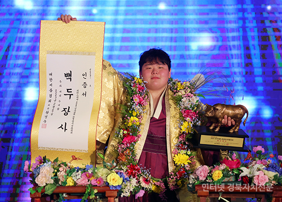5¹Î¼Ó¾¾¸§ ¹®°æÀå»ç¾¾¸§´ëȸ¡¯ ¹éµÎÀå»ç(140kgÀÌÇÏ)¿¡ µî±ØÇÑ ±è¹ÎÀç(¿µ¾Ï±º¹Î¼Ó¾¾¸§´Ü)°¡ ¿ì½ÂÀ» È®Á¤ÇÑ ÈÄ ±â»µÇϰí ÀÖ´Ù.