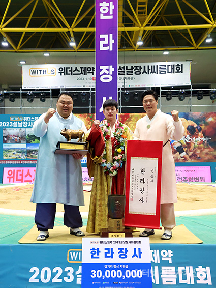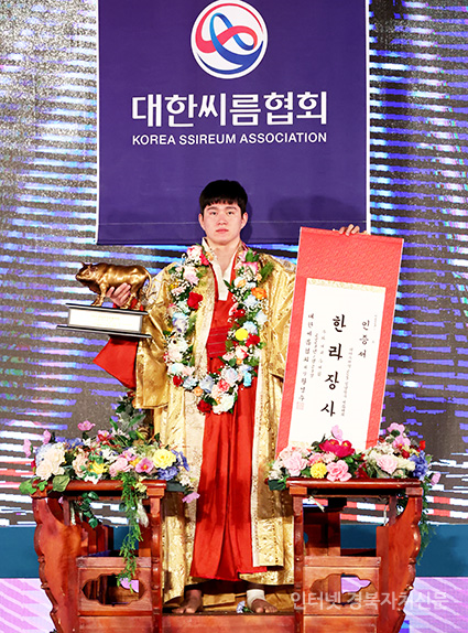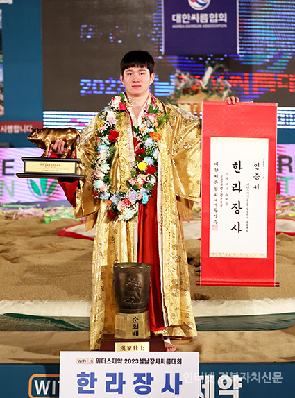 23ÀÏ(¿ù) Àü¶ó³²µµ ¿µ¾Ï±º ¿µ¾Ï½Ç³»Ã¼À°°ü¿¡¼ ¿¸° ¡®À§´õ½ºÁ¦¾à 2023 ¼³³¯Àå»çÀå»ç¾¾¸§´ëÃàÁ¦¡¯ ÇѶó±Þ(105kgÀÌÇÏ)¿¡ µî±ØÇÑ Â÷¹Î¼ö(¿µ¾Ï±º¹Î¼Ó¾¾¸§´Ü)°¡ Àå»çÀÎÁõ¼¿Í Ȳ¼ÒÆ®·ÎÇǸ¦ µé°í ±â³ä»çÁøÀ» Âï°í ÀÖ´Ù.2