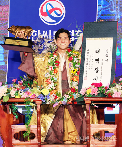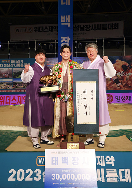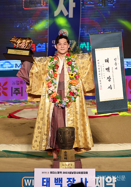 21ÀÏ(Åä) Àü¶ó³²µµ ¿µ¾Ï±º ¿µ¾Ï½Ç³»Ã¼À°°ü¿¡¼­ ¿­¸° ¡®À§´õ½ºÁ¦¾à 2023 ¼³³¯Àå»ç¾¾¸§´ëÃàÁ¦¡¯ ŹéÀå»ç(80kgÀÌÇÏ)¿¡ µî±ØÇÑ ³ë¹ü¼ö(¿ïÁÖ±ºÃ»)°¡ Àå»ç²É°¡¸¶¸¦ Ÿ°í Àå»çÀÎÁõ¼­¿Í Ȳ¼ÒÆ®·ÎÇǸ¦ µé°í ±â³ä»çÁøÀ» Âï°í ÀÖ´Ù.