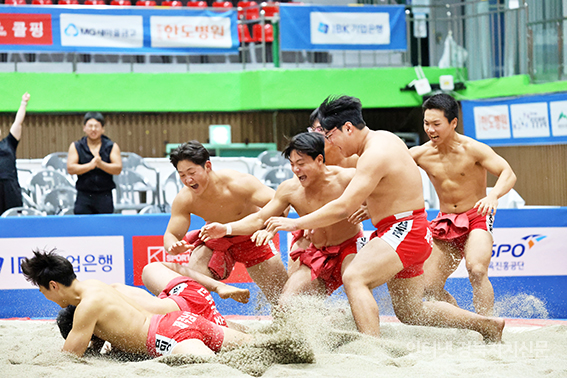 ¸¶Áö¸· ¿ë»ç±Þ(90kg ÀÌÇÏ)¿¡¼ ³²³ç°í ¾çÀçÇõÀÌ ¹Ð¾îÄ¡±â¿Í »Ñ·ÁÄ¡±â¸¦ ¼º°ø½Ã۸ç 4-2·Î ³²³ç°íÀÇ ¿ì½ÂÀ» È®Á¤Áö¾ú´Ù.