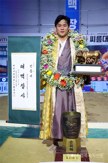 5õÇÏÀå»ç¾¾¸§´ëÃàÁ¦¡¯ ŹéÀå»ç(80kgÀÌÇÏ)¿¡ µî±ØÇÑ ³ë¹ü¼ö(¿ïÁÖ±ºÃ»)°¡ ¿ì½ÂÀ» È®Á¤ÇÑ ÈÄ ±â»µÇϰí ÀÖ´Ù.