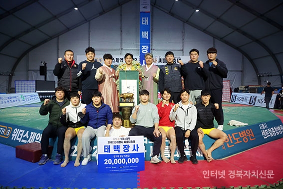 2õÇÏÀå»ç¾¾¸§´ëÃàÁ¦¡¯ ŹéÀå»ç(80kgÀÌÇÏ)¿¡ µî±ØÇÑ ³ë¹ü¼ö(¿ïÁÖ±ºÃ»)°¡ Àå»çÀÎÁõ¼¿Í Ȳ¼ÒÆ®·ÎÇǸ¦ µé°í ±â³ä»çÁøÀ» Âï°í ÀÖ´Ù.