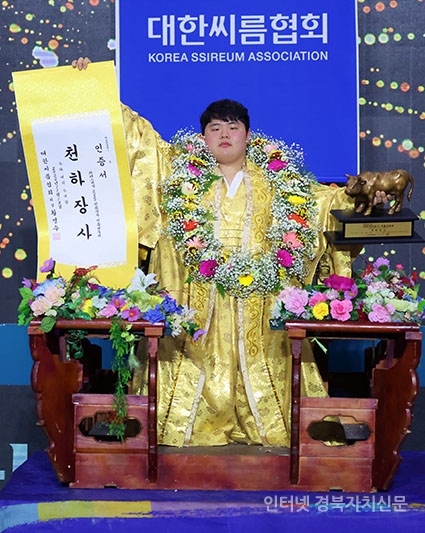 3õÇÏÀå»ç¾¾¸§´ëÃàÁ¦¡¯ õÇÏÀå»ç(140kgÀÌÇÏ)¿¡ µî±ØÇÑ ±è¹ÎÀç(¿ï»ê´ëÇб³)°¡ ÁÖ¸íÂù °¨µ¶(¿À¸¥ÂÊ)°ú ±â³ä»çÁøÀ» Âï°í ÀÖ´Ù.