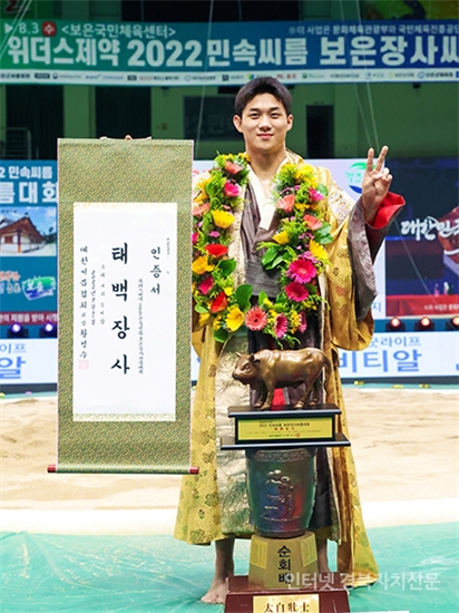 5º¸Àº±º º¸Àº±¹¹ÎüÀ°¼¾ÅÍ¿¡¼ ¿¸° ¡®À§´õ½ºÁ¦¾à 2022 ¹Î¼Ó¾¾¸§ º¸ÀºÀå»ç¾¾¸§´ëȸ¡¯ ŹéÀå»ç(80kgÀÌÇÏ)¿¡ µî±ØÇÑ ³ë¹ü¼ö(¿ïÁÖ±ºÃ»)°¡ ¿ì½ÂÀ» È®Á¤ÇÑ ÈÄ ±â»µÇϰí ÀÖ´Ù.