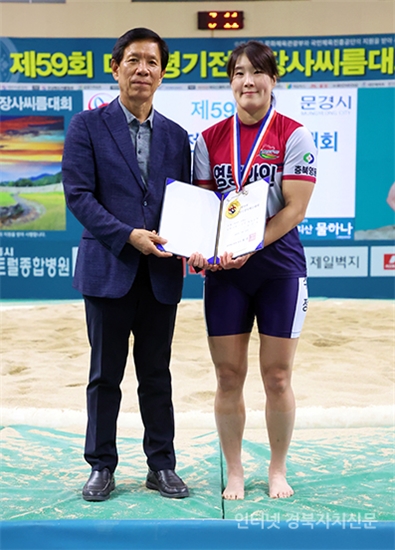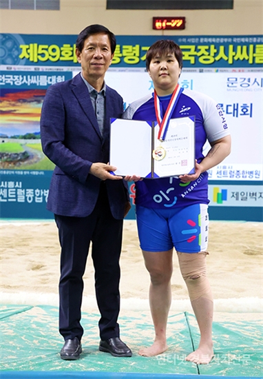 17 ¹®°æ½Ã ¹®°æ½Ç³»Ã¼À°°ü¿¡¼ ¿¸° 'Á¦59ȸ ´ëÅë·É±âÀü±¹Àå»ç¾¾¸§´ëȸ' ¿©ÀںΠ°³ÀÎÀü ¹«±ÃȱÞ(80kg ÀÌÇÏ)¿¡¼ ¿ì½ÂÇÑ ÃÖÈñÈ(¾È»ê½Ãû)°¡ ¹®°æ½ÃüÀ°È¸ ³ë¼øÈ ȸÀå°ú ±â³ä ÃÔ¿µÀ» Çϰí ÀÖ´Ù.