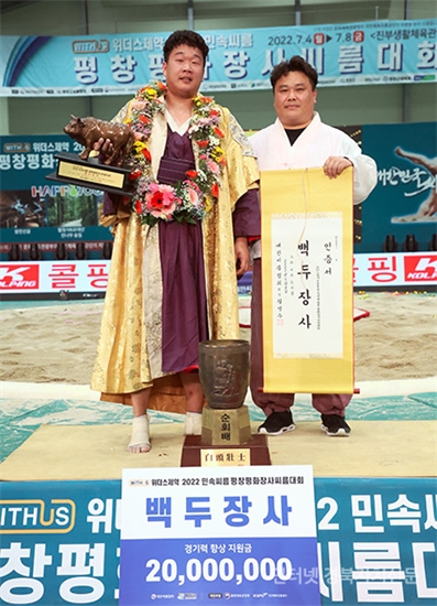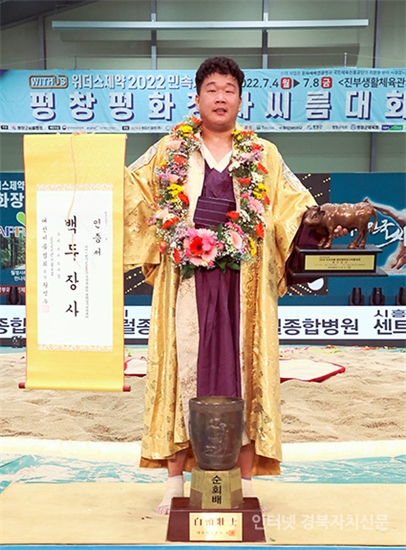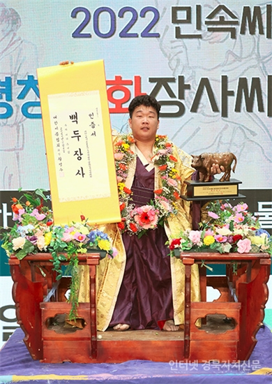 2Æòⱺ ÁøºÎ»ýȰüÀ°°ü¿¡¼ ¿¸° ¡®À§´õ½ºÁ¦¾à 2022 ¹Î¼Ó¾¾¸§ ÆòâÆòÈÀå»ç¾¾¸§´ëȸ¡¯ ¹éµÎÀå»ç(140kgÀÌÇÏ)¿¡ µî±ØÇÑ Á¤Ã¢Á¶(¼ö¿øÆ¯·Ê½Ãû)°¡ Àå»ç ²É°¡¸¶¸¦ Ÿ°í ±â³ä»çÁøÀ» Âï°í ÀÖ´Ù.