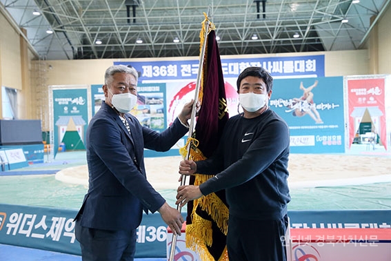 1â³ç±¹¹ÎüÀ°¼¾ÅÍ¿¡¼­ ¿­¸° 'Á¦36ȸ Àü±¹½Ã¡¤µµ´ëÇ×Àå»ç¾¾¸§´ëȸ'¿¡¼­ Á¾ÇÕ¿ì½ÂÀ» Â÷ÁöÇÑ °æ»ó³²µµ°¡ â³ç±º¾¾¸§Çùȸ ±èµ¿¿ø ȸÀå¿¡°Ô ¿ì½Â±â¸¦ ¹ÞÀº ÈÄ ±â³ä ÃÔ¿µÀ» Çϰí ÀÖ´Ù.
