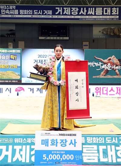 6°ÅÁ¦Àå»ç¾¾¸§´ëȸ' ¿©ÀںΠ´ÜüÀü¿¡¼ ¿ì½ÂÇÑ °ÅÁ¦½Ãû(°æ³²)ÀÌ ¿ì½Â È®Á¤ ÈÄ ±â»µÇϰí ÀÖ´Ù.