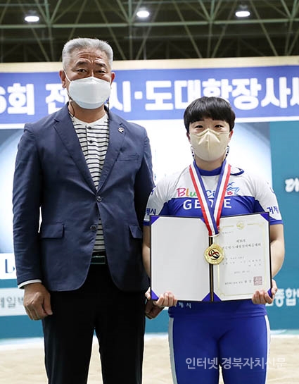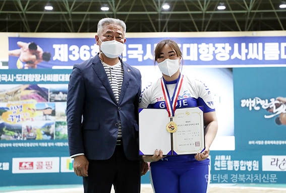 3â³ç±º â³ç±¹¹ÎüÀ°¼¾ÅÍ¿¡¼ ¿¸° 'Á¦36ȸ Àü±¹½Ã¡¤µµ´ëÇ×Àå»ç¾¾¸§´ëȸ' ¿©ÀںΠ°³ÀÎÀü ¹«±ÃȱÞ(80kg ÀÌÇÏ)°æ±â¿¡¼ ¿ì½ÂÇÑ ÀÌ´ÙÇö(°ÅÁ¦½Ãû)ÀÌ ±èµ¿¿ø â³ç±º¾¾¸§ÇùȸÀå°ú ±â³ä ÃÔ¿µÀ» Çϰí ÀÖ´Ù.