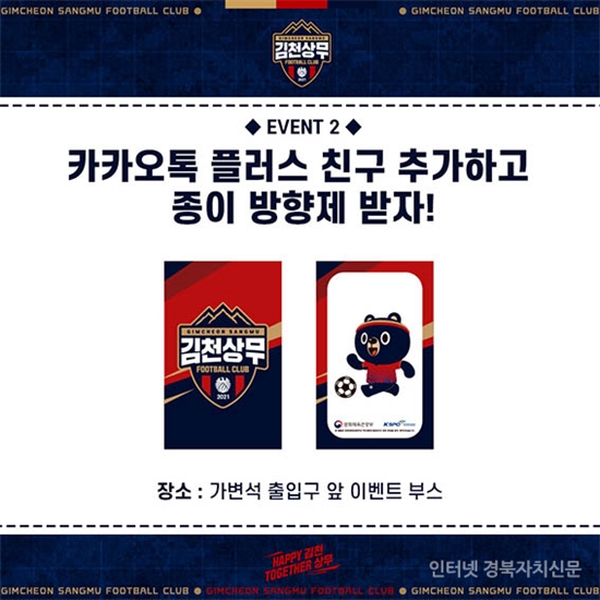 ±èõ»ó¹«´Â Àü °üÁß¿¡°Ô ÀÀ¿ø¿ë Ŭ·¡ÆÛ, Á¾À̸ðÀÚ¸¦ ÁõÁ¤ÇÑ´Ù. °¡º¯¼® °üÁß ´ë»óÀ¸·Î ¼±Âø¼ø 200¸í¿¡°Ô´Â ±èõ»ó¹« ¦¦À̸¦ Á¦°øÇÑ´Ù. °¡º¯¼® ÃâÀÔ±¸ ¾Õ À̺¥Æ® ºÎ½º¿¡¼´Â īī¿ÀÅå Ç÷¯½º Ä£±¸ Ãß°¡ ¹× ÀÎÁõ ½Ã, ¼±Âø¼øÀ¸·Î ±èõ»ó¹« Á¾ÀÌ ¹æÇâÁ¦¸¦ ÁõÁ¤ÇÑ´Ù.