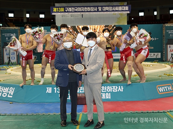 4±¸·Ê½Ç³»Ã¼À°°ü¿¡¼ ¿¸° 'Á¦13ȸ ±¸·ÊÀü±¹¿©ÀÚõÇÏÀå»ç ¹× ´ëÇÐÀå»ç¾¾¸§´ëȸ' ´ëÇб³ºÎ ´ÜüÀü¿¡¼ ¿ì½ÂÇÑ °æ³²´ëÇб³(°æ»ó³²µµ) ³ë¸í½Ä °¨µ¶(¿À¸¥ÂÊ)ÀÌ ±è»óÇö ±¸·Ê±º¾¾¸§Çùȸ ȸÀå(¿ÞÂÊ)°ú ¿ì¼öÁöµµÀÚ »óÆÐ¸¦ µé°í ±â³ä ÃÔ¿µÀ» Çϰí ÀÖ´Ù.