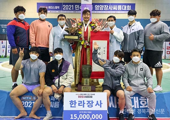 °æ»óºÏµµ ¿µ¾ç±º ¿µ¾ç±¹¹ÎüÀ°¼¾ÅÍ¿¡¼ ¿¸° ¡®À§´õ½ºÁ¦¾à 2021 ¿µ¾çÀå»ç¾¾¸§´ëȸ¡¯ ÇѶóÀå»ç(105kgÀÌÇÏ)¿¡ µî±ØÇÑ À̽¿í(Á¤À¾½Ãû)ÀÌ ¿ì½Â È®Á¤ ÈÄ ±è½Ã¿µ °¨µ¶°ú Æ÷¿ËÀ» Çϰí ÀÖ´Ù4