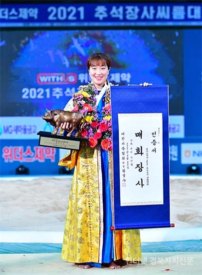 Ãæ³² žȱº žÈÁ¾Çսdz»Ã¼À°°ü¿¡¼ ¿¸° À§´õ½ºÁ¦¾à 2021 Ãß¼®Àå»ç¾¾¸§´ëȸ ¿©ÀںΠ´ÜüÀü¿¡¼ ¿ì½ÂÇÑ ¾È»ê½ÃûÀÌ È²¼ÒÆ®·ÎÇÇ¿Í Àå»çÀÎÁõ¼¸¦ µé°í ±â³ä ÃÔ¿µÀ» Çϰí ÀÖ´Ù.1