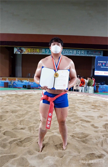 °í¼º±º °í¼º±º±¹¹ÎüÀ°¼¾ÅÍ¿¡¼ ¿¸° ¡®Á¦51ȸ ȸÀå±âÀü±¹Àå»ç¾¾¸§´ëȸ¡¯ ´ëÇкΠ°³ÀÎÀü Àå»ç±Þ(140kg ÀÌÇÏ)¿¡¼ ¿ì½ÂÇÑ ±èº¸Çö(´ë±¸´ë)¼±¼ö°¡ ±â³ä ÃÔ¿µÀ» Çϰí ÀÖ´Ù.