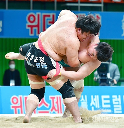 ÇØ³²±º ¿ì½½Ã¼À°°ü¿¡¼ ¿¸° ¡®À§´õ½ºÁ¦¾à 2021 ÇØ³²Àå»ç¾¾¸§´ëȸ¡¯ ¹éµÎÀå»ç(140kgÀÌÇÏ)¿¡ µî±ØÇÑ ±èÁø(ÁõÆò±ºÃ») °á½ÂÀü¿¡¼ À±¼º¹Î(¿µ¾Ï±º¹Î¼Ó¾¾¸§´Ü)¿¡°Ô Àâä±â¸¦ ½ÃµµÇϰí ÀÖ´Ù.