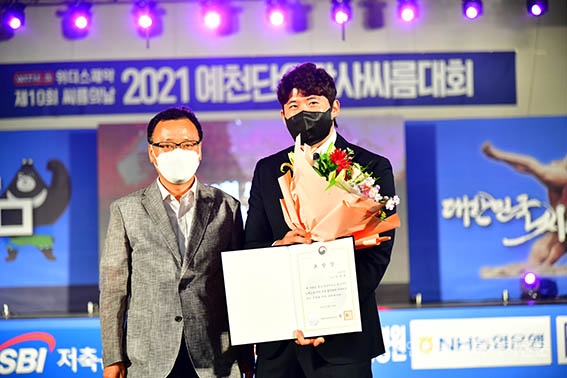 ¿¹Ãµ±º ¿¹Ãµ±º¹®ÈüÀ°¼¾ÅÍ¿¡¼ 'Á¦10ȸ ¾¾¸§ÀÇ ³¯'À» ±â³äÇÏ¿© À¯°øÀÚ·Î ¼±Á¤µÈ °¿øµµ¾¾¸§Çùȸ ÇÑ´ë¼ö ȸÀåÀÌ ´ëÇѾ¾¸§Çùȸ Ȳ°æ¼ö ȸÀå°ú ÇÔ²² ±â³ä»çÁøÀ» Âï°íÀÖ´Ù.