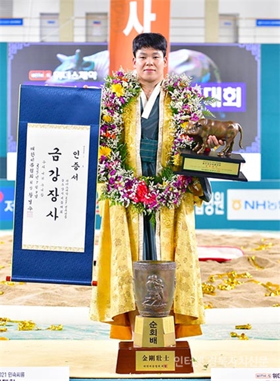 ¿ï»ê±¤¿ª½Ã ¿ïÁÖ±º ¿ïÁÖ±º¹ÎüÀ°°ü¿¡¼ ¿¸° ¡®À§´õ½ºÁ¦¾à 2021 ¹Î¼Ó¾¾¸§ ¿ïÁÖÀå»ç¾¾¸§´ëȸ¡¯ ±Ý°Àå»ç(90kgÀÌÇÏ)¿¡ µî±ØÇÑ ÃÖ¿µ¿ø(žȱºÃ»)ÀÌ Àå»çÀÎÁõ¼¿Í Ȳ¼ÒÆ®·ÎÇǸ¦ µé°í ±â³ä»çÁøÀ» Âï°í ÀÖ´Ù.