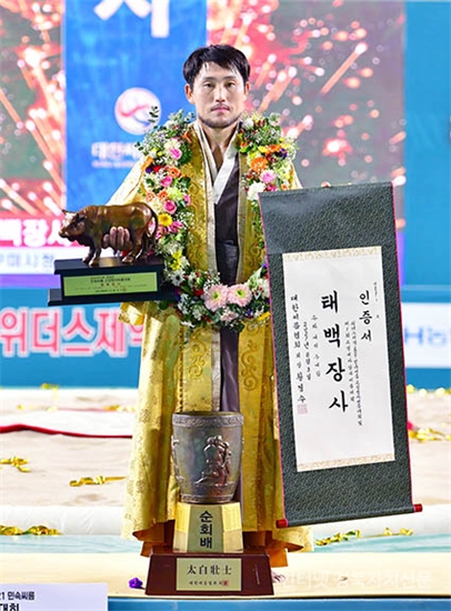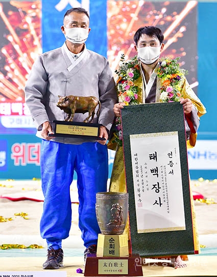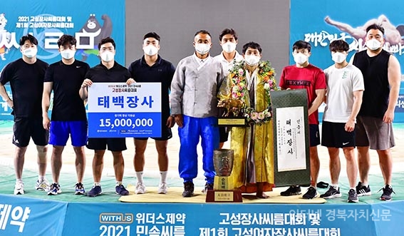 °æ»ó³²µµ °í¼º±º °í¼º±¹¹ÎüÀ°¼¾ÅÍ¿¡¼ ¿¸° ¡®À§´õ½ºÁ¦¾à 2021 °í¼ºÀå»ç¾¾¸§´ëȸ ¹× Á¦1ȸ °í¼º¿©ÀÚÀå»ç¾¾¸§´ëȸ¡¯ ŹéÀå»ç(80kgÀÌÇÏ)¿¡ µî±ØÇÑ ¾ÈÇØ¿ë(±¸¹Ì½Ãû)ÀÌ Àå»çÀÎÁõ¼¿Í Ȳ¼ÒÆ®·ÎÇǸ¦ µé°í ±â³ä»çÁøÀ» Âï°í ÀÖ´Ù.1
