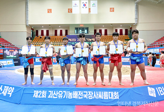 3±«»ê±º ±«»ê¹®ÈüÀ°¼¾ÅÍ¿¡¼ ¿¸° ¡®Á¦2ȸ ±«»êÀ¯±â³ó¹èÀü±¹Àå»ç¾¾¸§´ëȸ¡¯ ÁßÇб³ºÎ °³ÀÎÀü¿¡¼ 1À§¸¦ Â÷ÁöÇÑ Á¤¼ºÀç(½Å¾îÁß), Á¤ÀÇÀ±(µ¿¼ºÁß), °Àοõ(ÁõÆòÁß), ÀÓÀÇÁØ(¿ëºÀÁß), ¼Áö¿õ(´ÉÀÎÁß), µµÀº¼ö(»õ³Ê¿ïÁß), ¾çÇö¿ì(¾ßžÁß)°¡ (¿ÞÂÊ ¼ø) ¸Þ´ÞÀ» ¸Þ°í »óÀåÀ» µé°í ´Ù°°ÀÌ ±â³ä»çÁøÀ» Âï°íÀÖ´Ù.