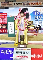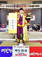 ¹®°æ´Ü¿ÀÀå»ç¾¾¸§´ëȸ¡¯ ¼Ò¹éÀå»ç(72kgÀÌÇÏ)¿¡ µî±ØÇÑ ¹Ú´ëÇÑ(¹®°æ½Ãû)ÀÌ Àå»çÀÎÁõ¼¿Í Ȳ¼ÒÆ®·ÎÇǸ¦ µé°í ±â³ä»çÁøÀ» Âï°í ÀÖ´Ù.'À§´õ½ºÁ¦¾à 2025 ¹®°æ´Ü¿ÀÀå...