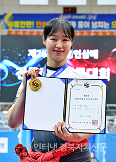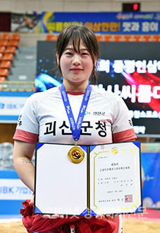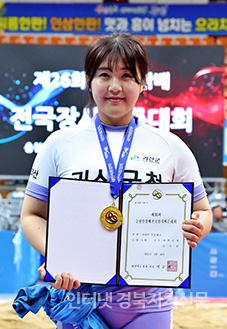 ÁõÆò±º ÁõÆòÁ¾ÇÕ½ºÆ÷Ã÷¼¾ÅÍ¿¡¼ ¿¸° ¡®Á¦26ȸ ÁõÆòÀλï¹èÀü±¹Àå»ç¾¾¸§´ëȸ¡¯¿©ÀںΠ¹«±ÃȱÞ(80kg ÀÌÇÏ)¿¡¼ 1À§¸¦ Â÷ÁöÇÑ ±èÁÖ¿¬(±«»ê±ºÃ»)ÀÌ ±â³ä»çÁøÀ» Âï°í ÀÖ´Ù.